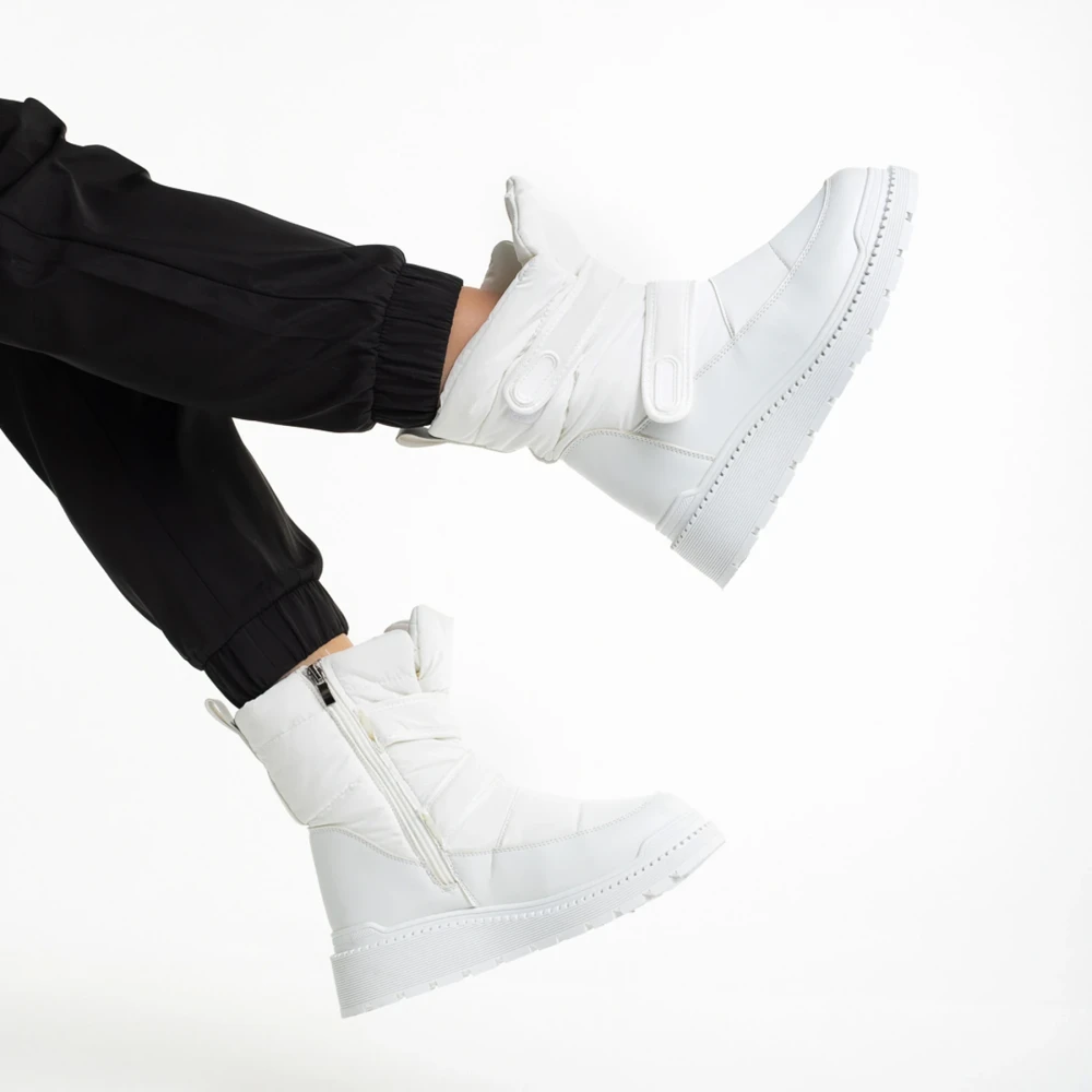 Xiomara fehér női csizma, műbőrből és textil anyagból készült