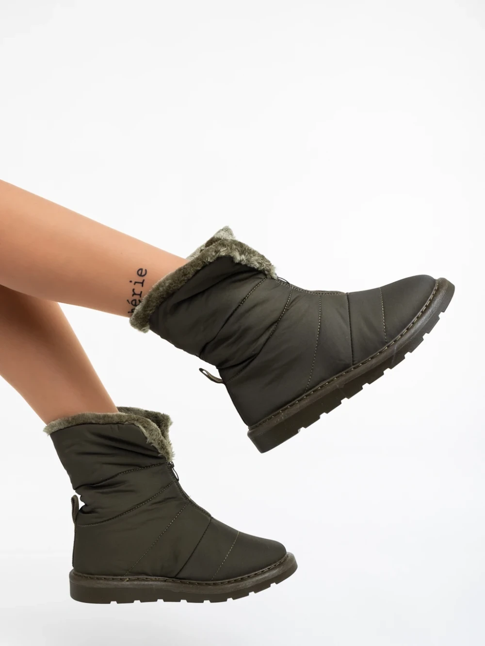 Tayte zöld , női csizma, textil anyagból
