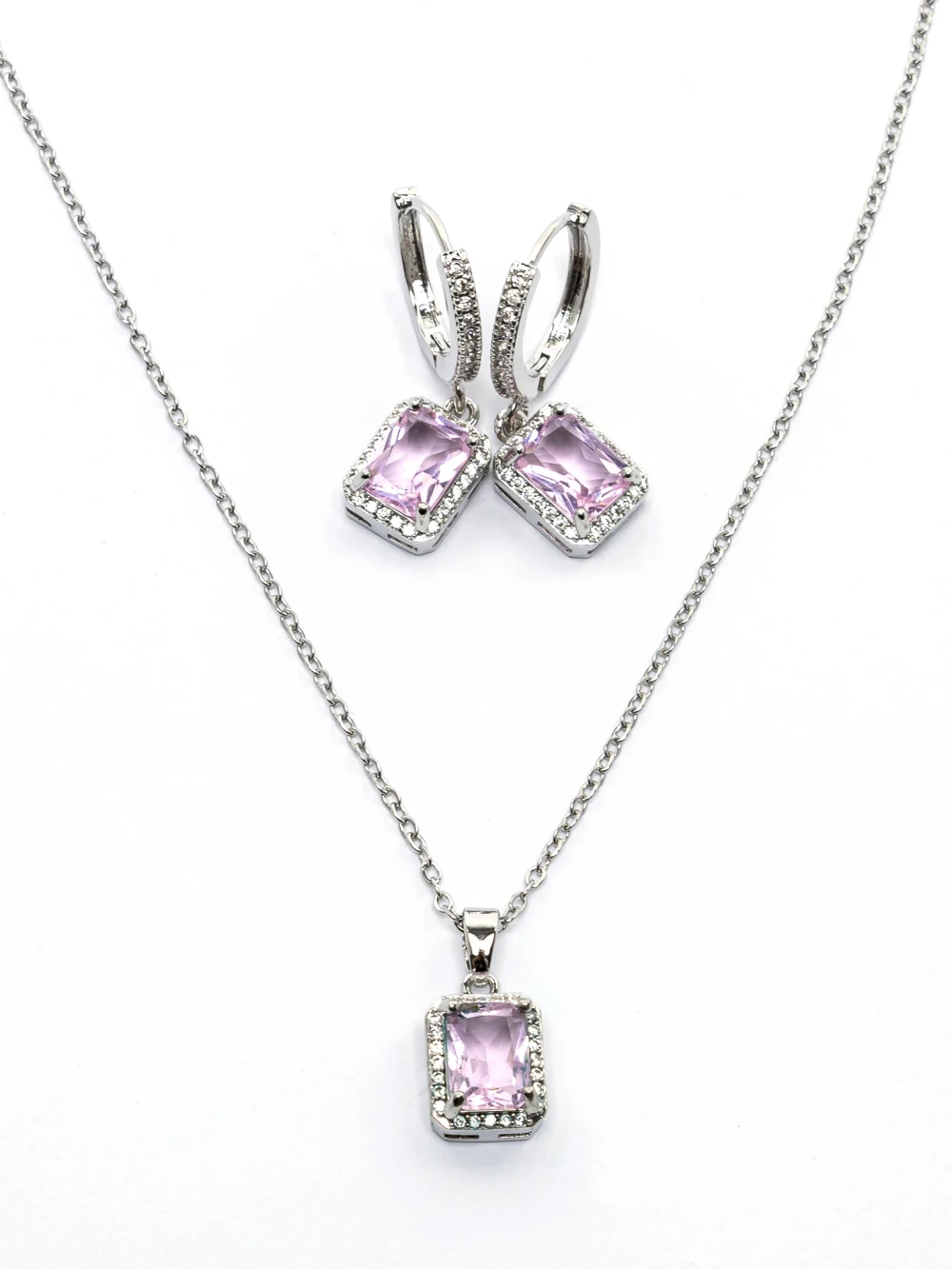 Nyaklánc + fülbevaló szett CLR001 Ezüst-Rózsaszín | Mei