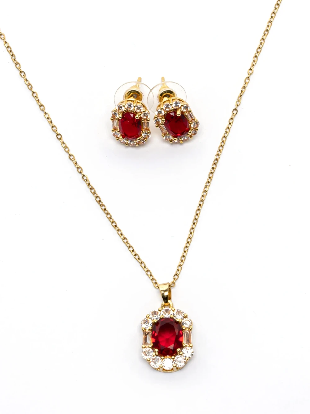Nyaklánc + fülbevaló szett T1021300 Arany-Piros | Mei