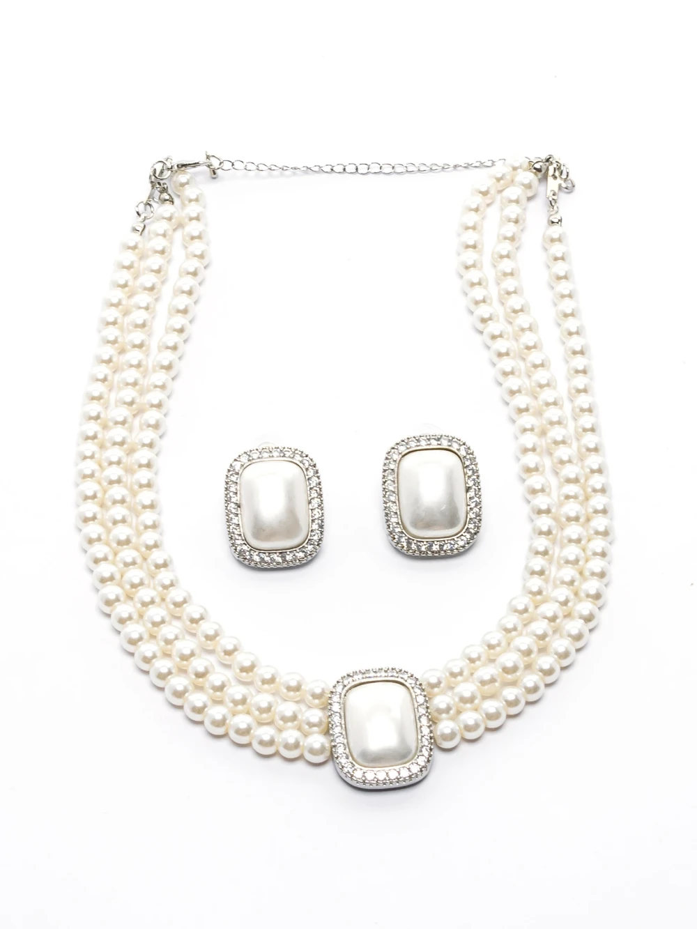 Nyaklánc + fülbevaló szett CLR010 Ezüst-Fehér | Mei