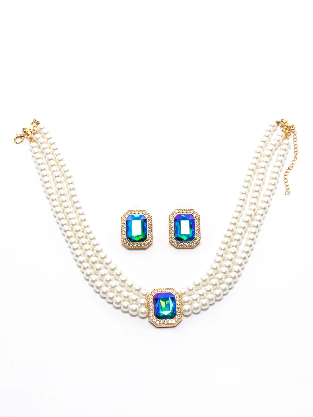 Nyaklánc + fülbevaló szett CLR011 Kék | Mei