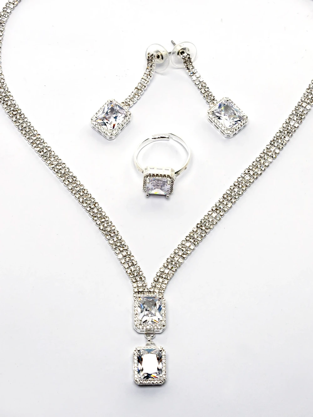 Nyaklánc + fülbevaló szett CLR014 Ezüst | Mei
