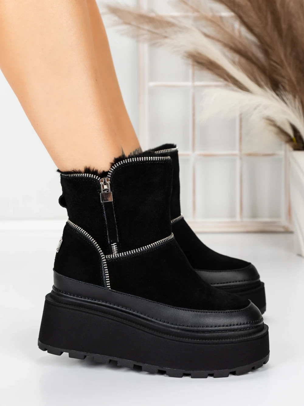Ghete Dama din piele naturala 3ASJN75 BLACK | PANTOFUL