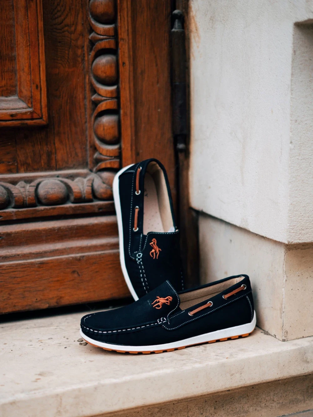 - műbőrből készült férfi mokaszin