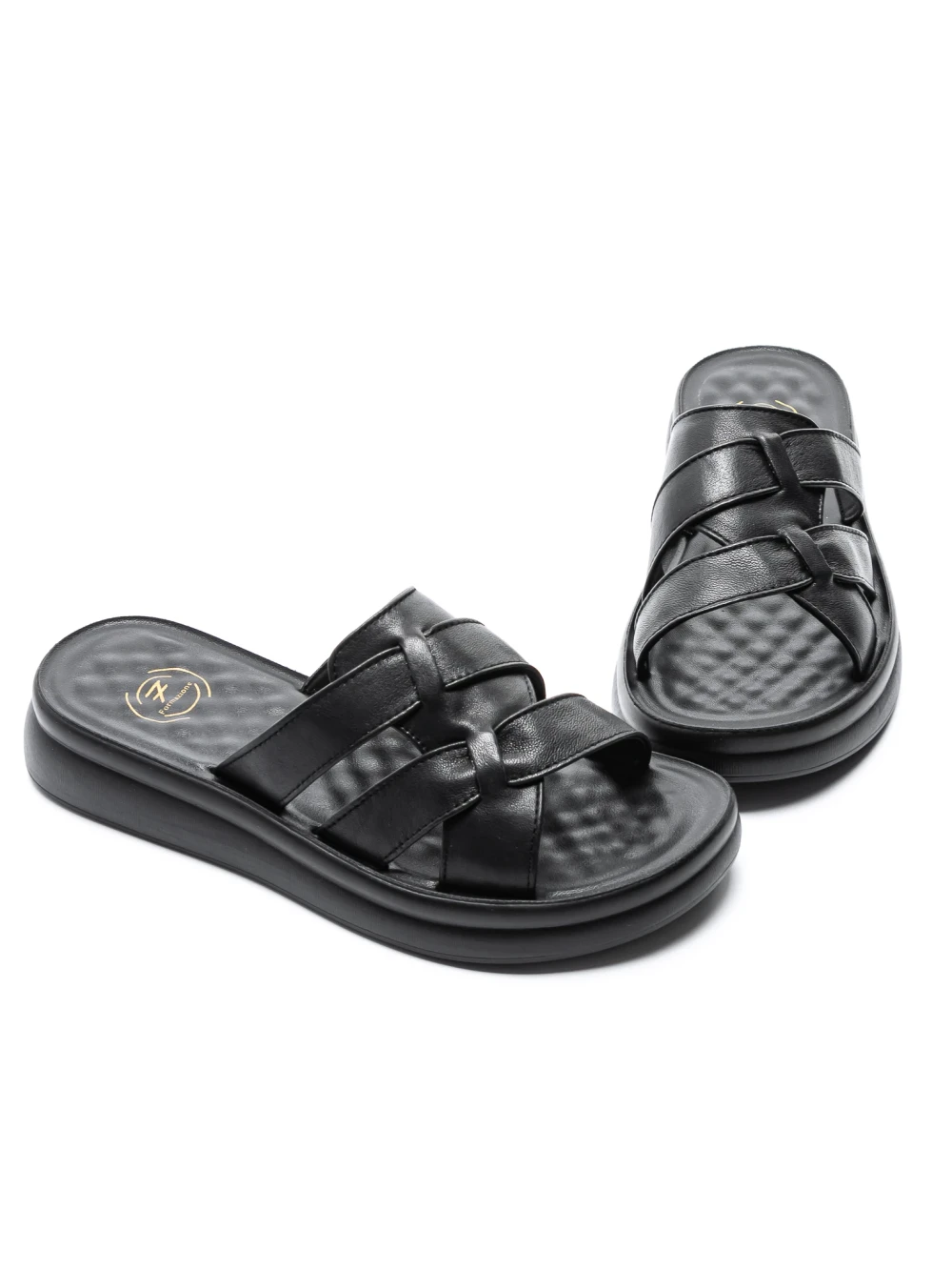Valódi bőrből készült női papucs 28-29 Fekete | Formazione