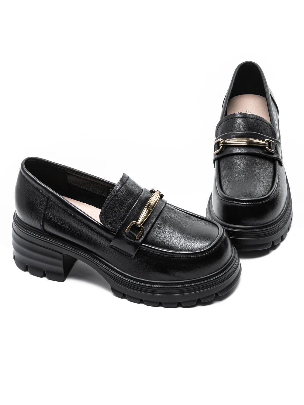 Természetes bőrből készült női alkalmi cipő 109-A1 Fekete | Advancer