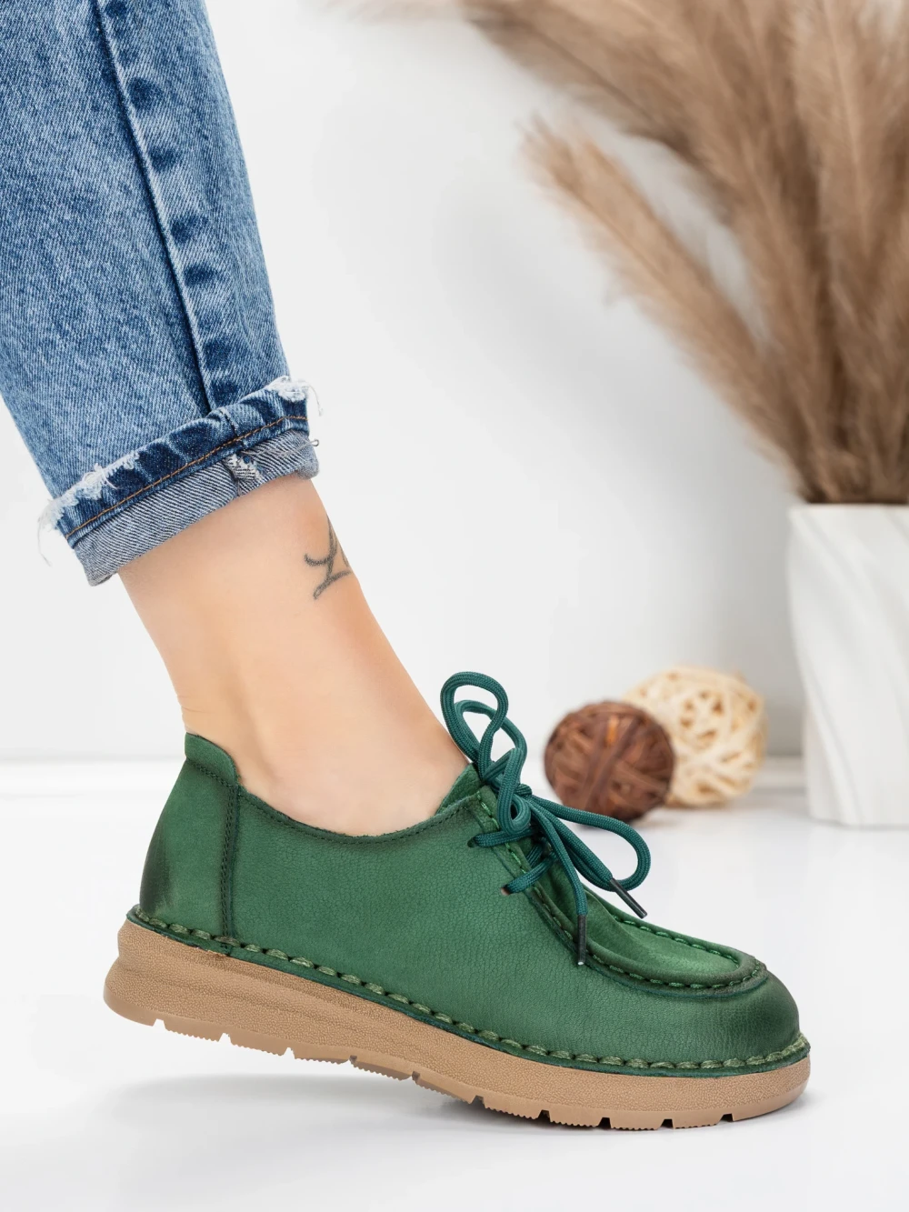 Természetes bőrből készült női alkalmi cipő 8887 Zöld | Formatione