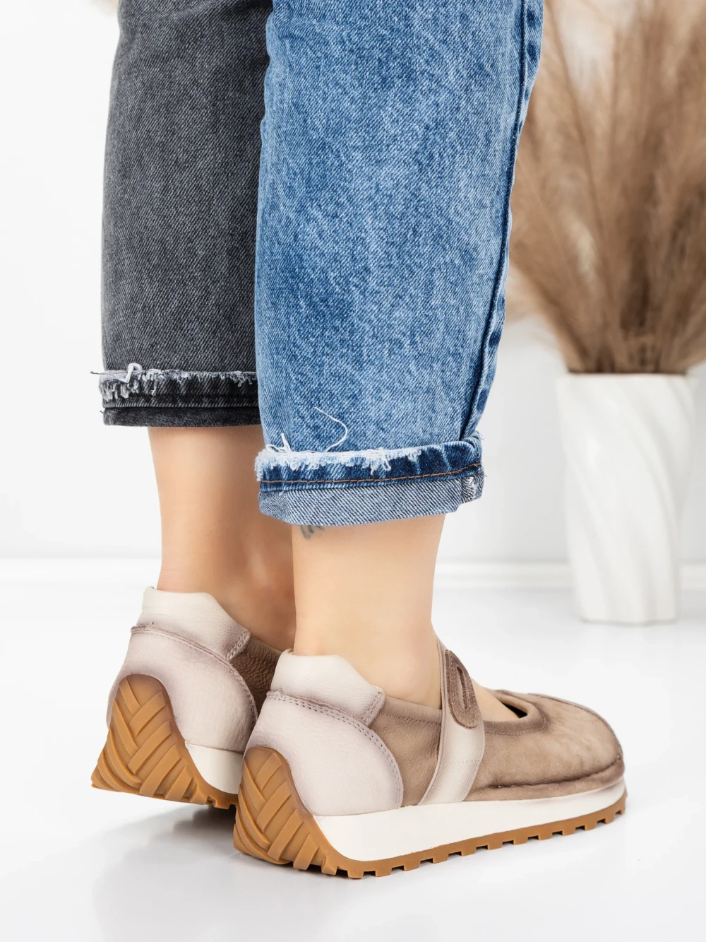 Pantofi Casual Dama din piele naturala KM9205 KHAKI | ADVANCER