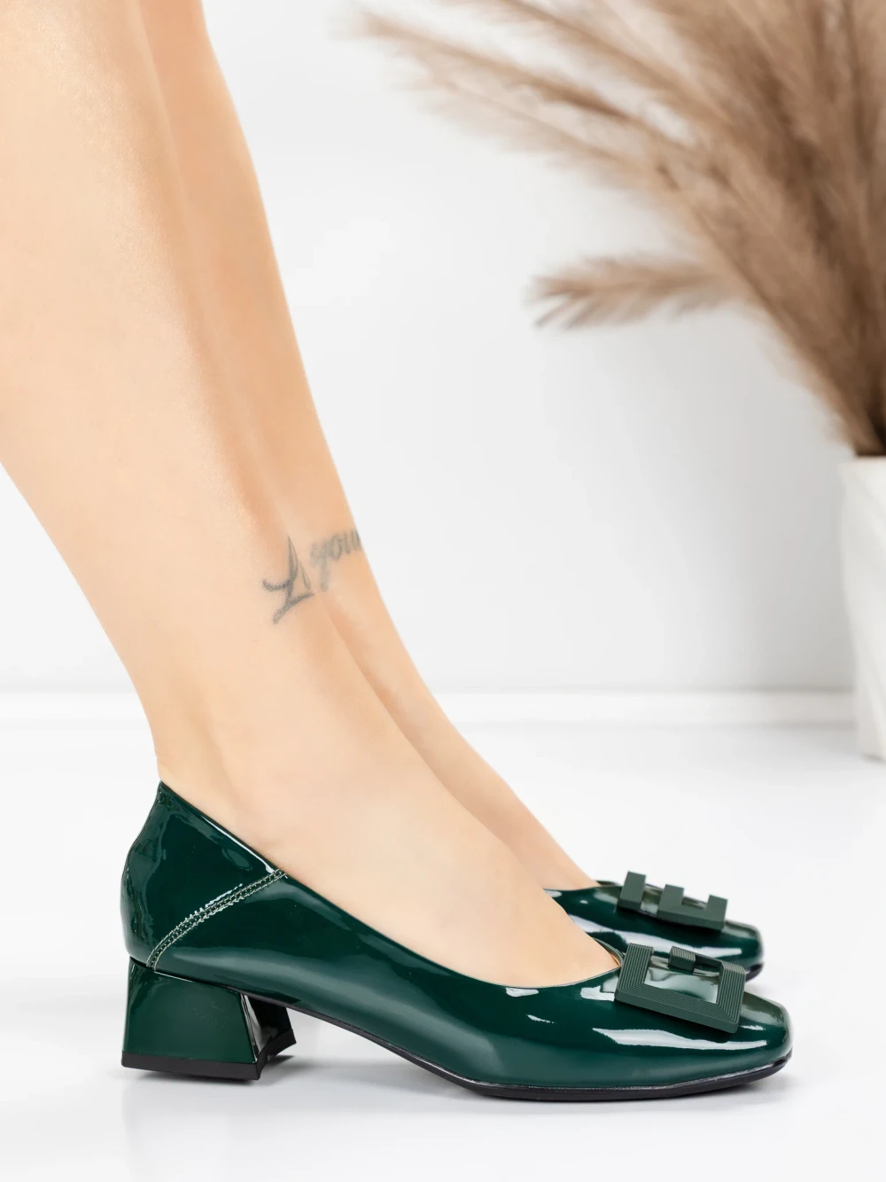 Pantofi cu toc din piele naturala 1011-1062 GREEN | FORMAZIONE