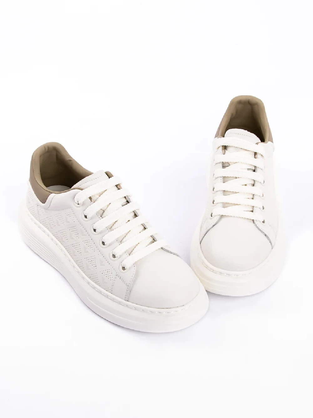 Természetes bőrből készült férfi sportcipő 88128 Fehér-Őszibarack | Advancer