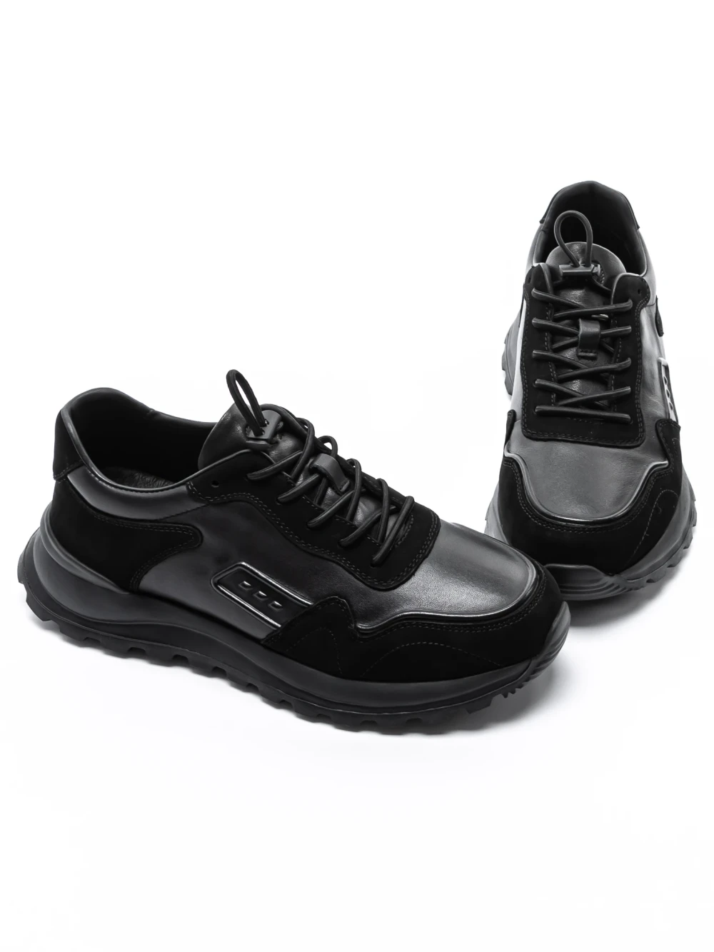 Természetes bőrből készült férfi sportcipő 8077 Fekete | Advancer