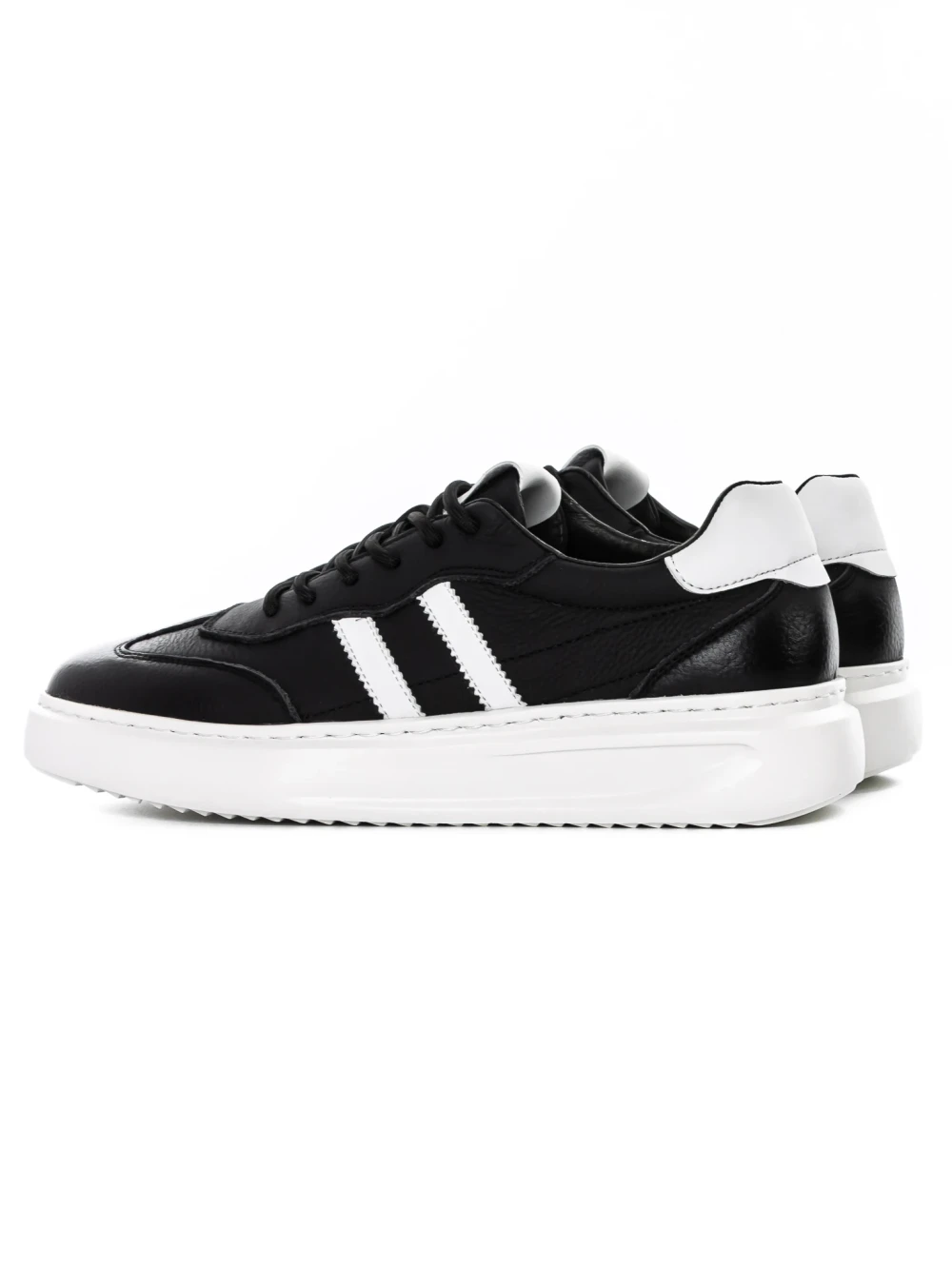 Természetes bőrből készült férfi sportcipő 02-208 Fekete-Fehér | Advancer
