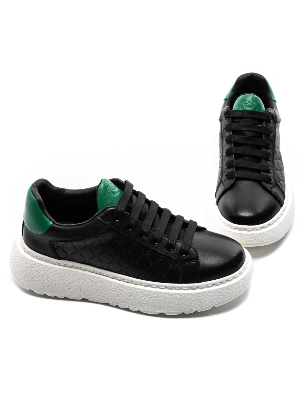 Természetes bőrből készült férfi sportcipő 5302 Fekete-Zöld | Advancer