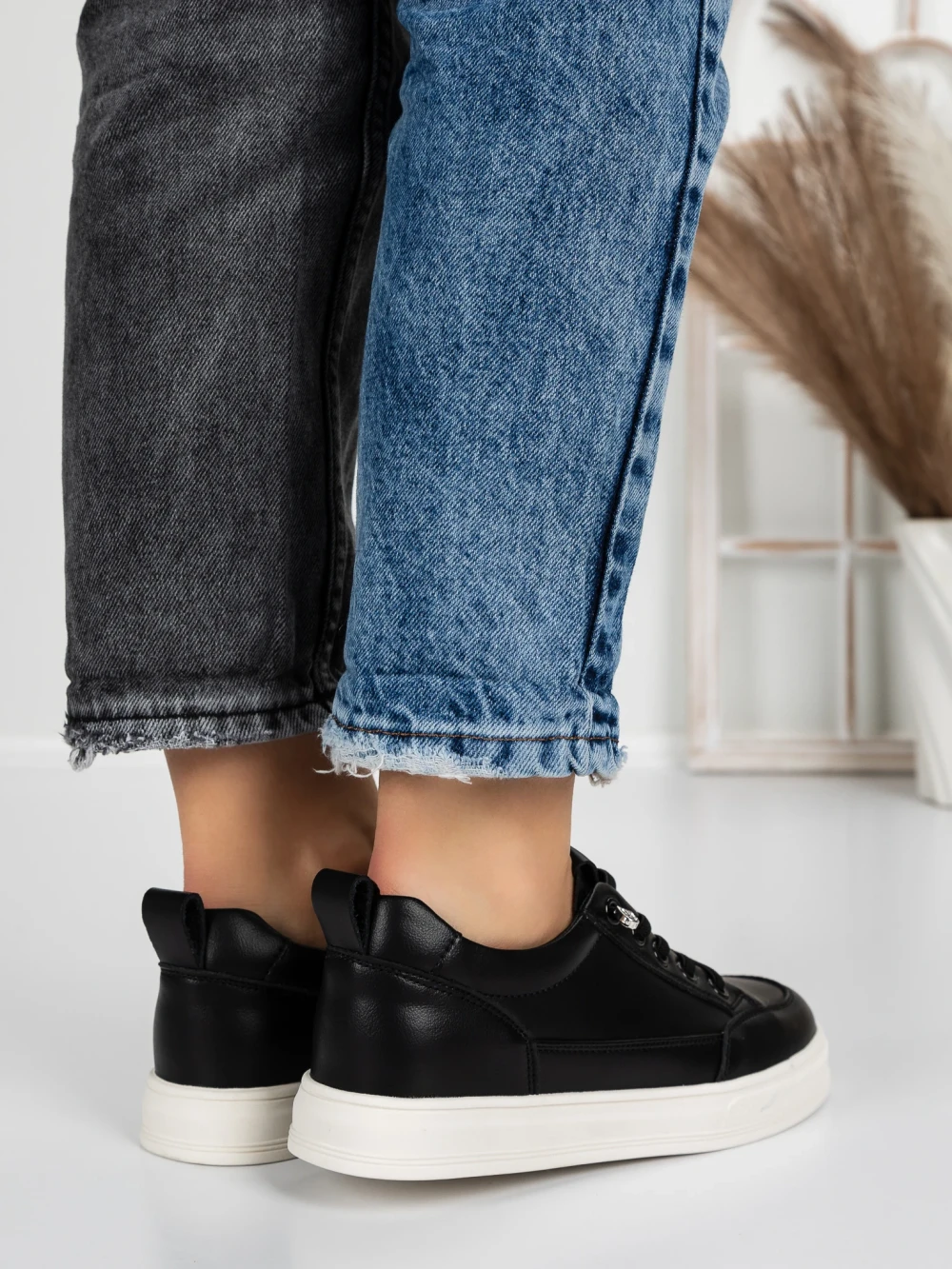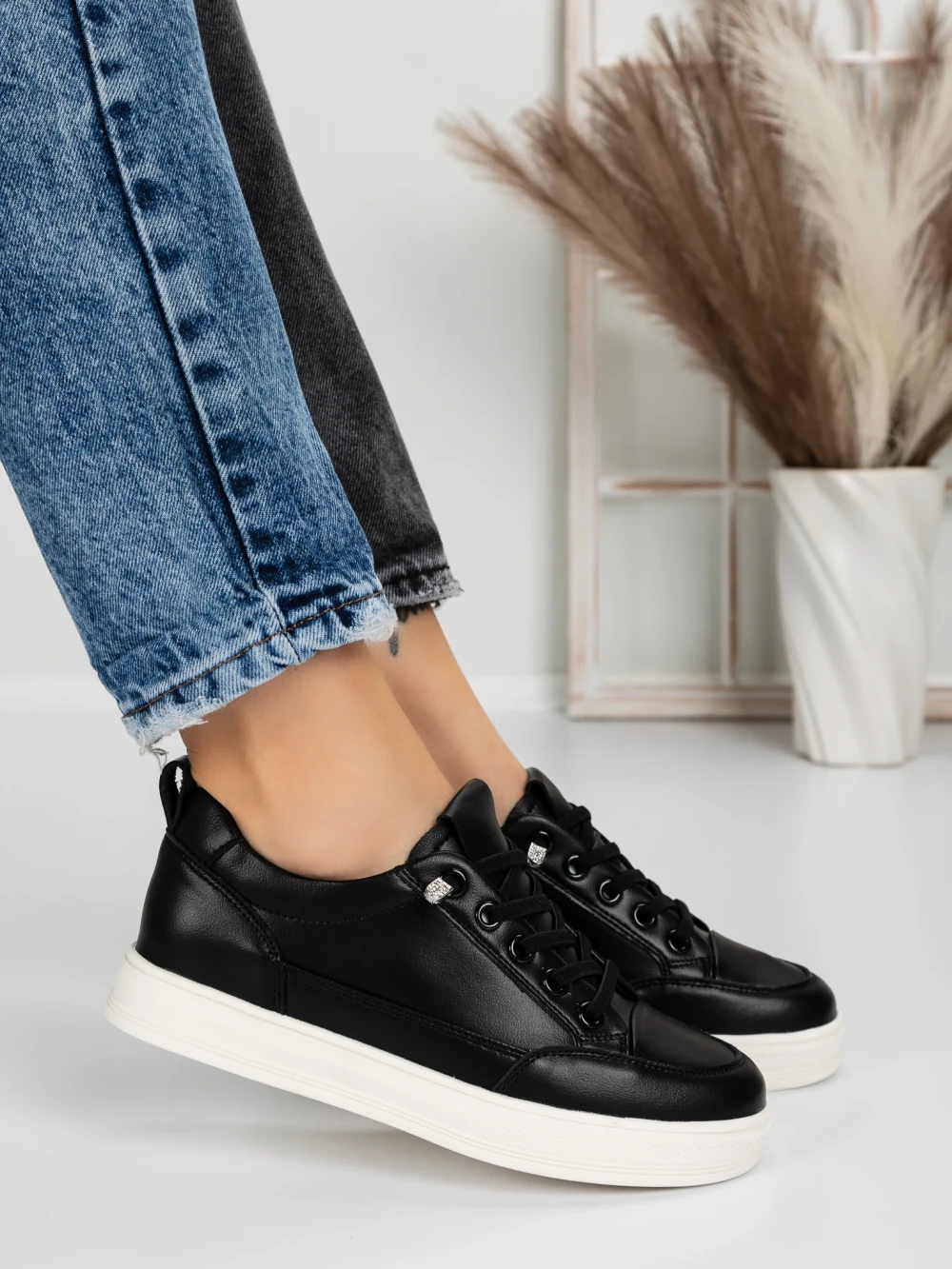 Természetes bőrből készült női sportcipő 5WZ6 Fekete | Pantoful