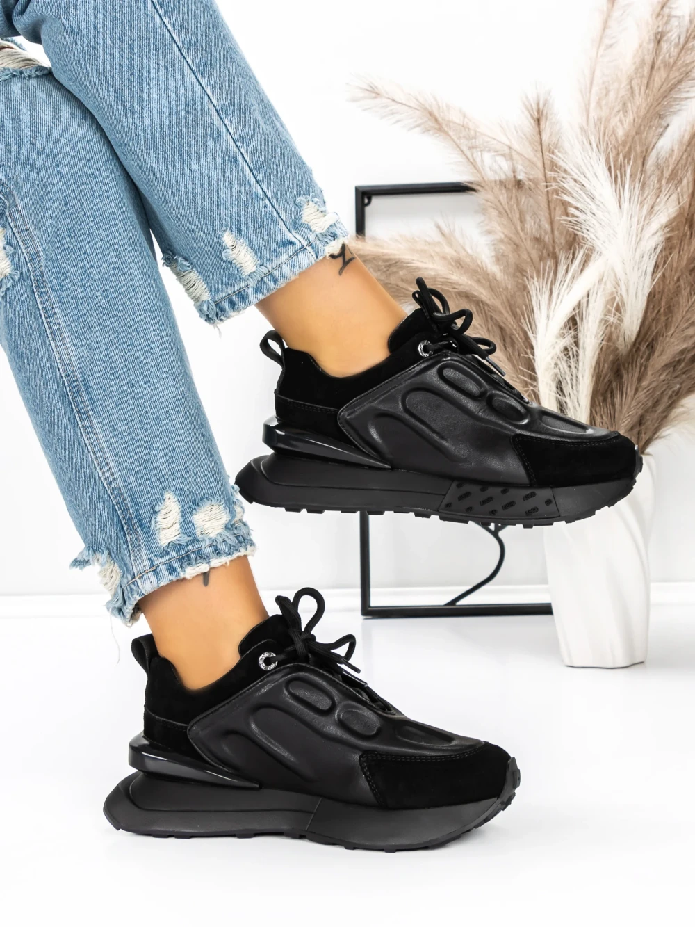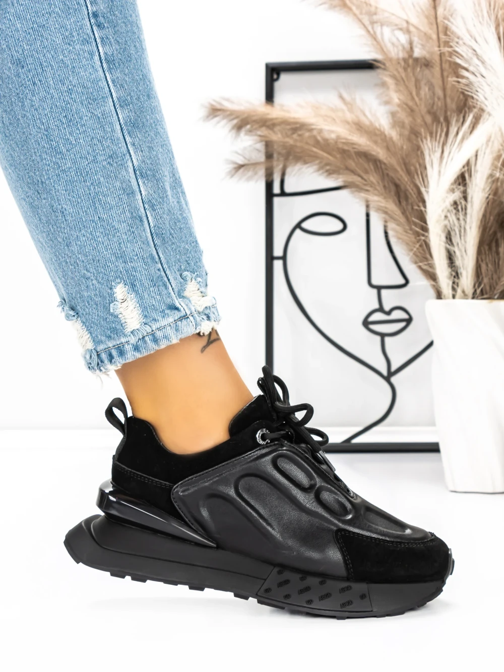Természetes bőrből készült női sportcipő 5SZ12 Fekete | Pantoful
