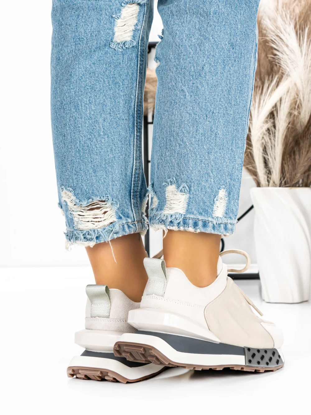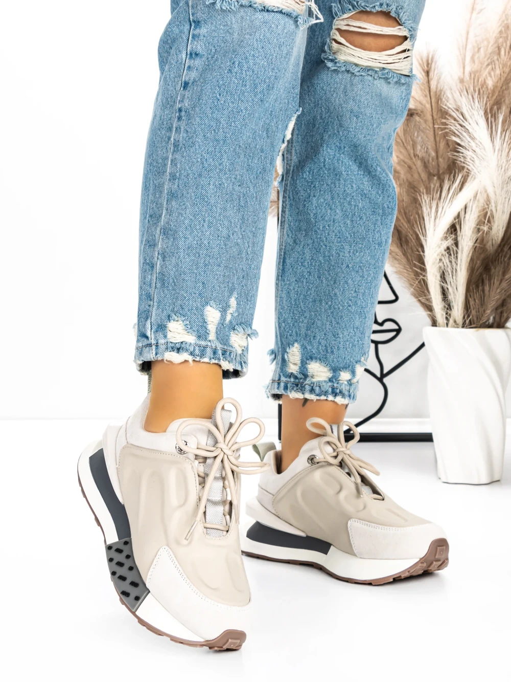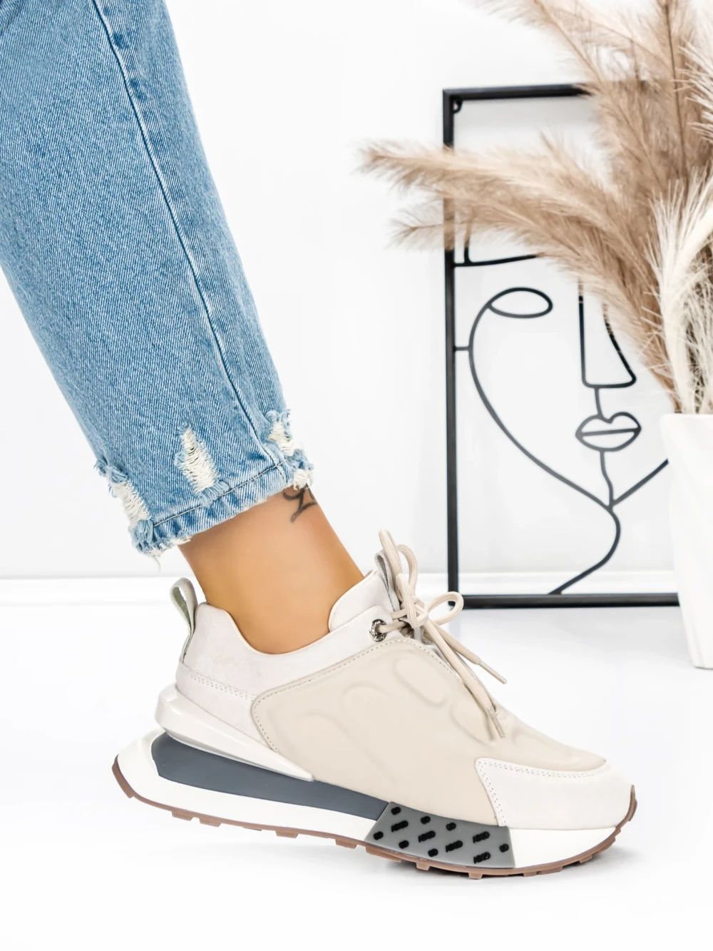 Természetes bőrből készült női sportcipő 5SZ12 Bézs | Pantoful