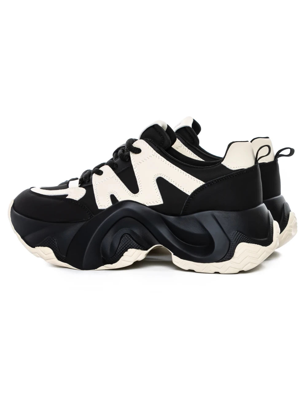Természetes bőrből készült női sportcipő 3A532 Fekete-Krém | Advancer