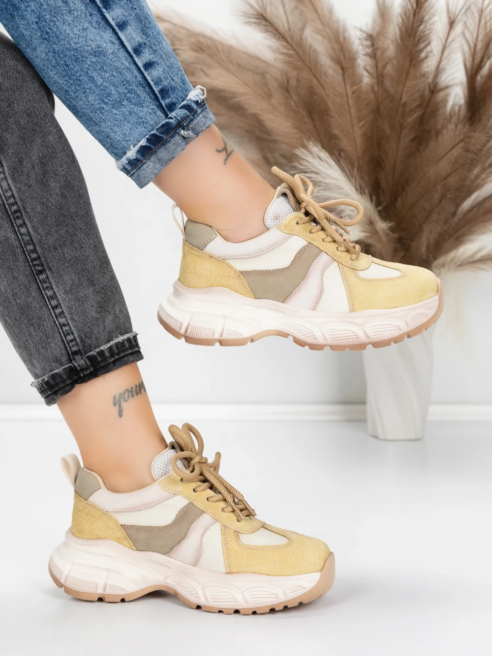 Természetes bőrből készült női sportcipő HY3393 Zöld | Advancer