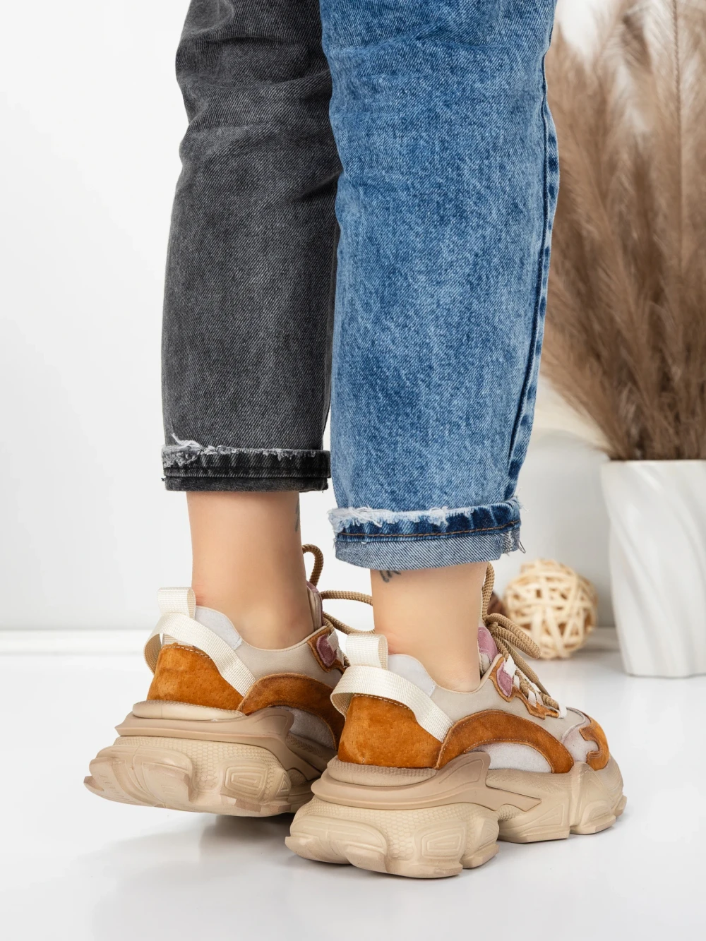 Természetes bőrből készült női sportcipő Y5758-2 Keki-Rózsaszín | Franco Gerardo