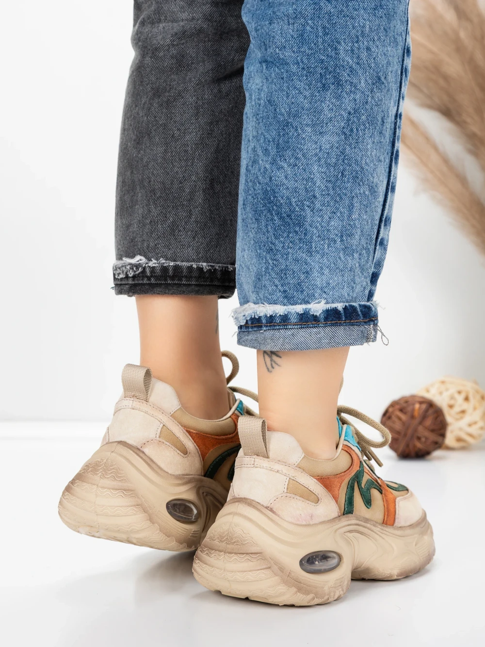 Pantofi Sport Dama din piele naturala HY2128 CREAM-GREEN | FRANCO GERARDO