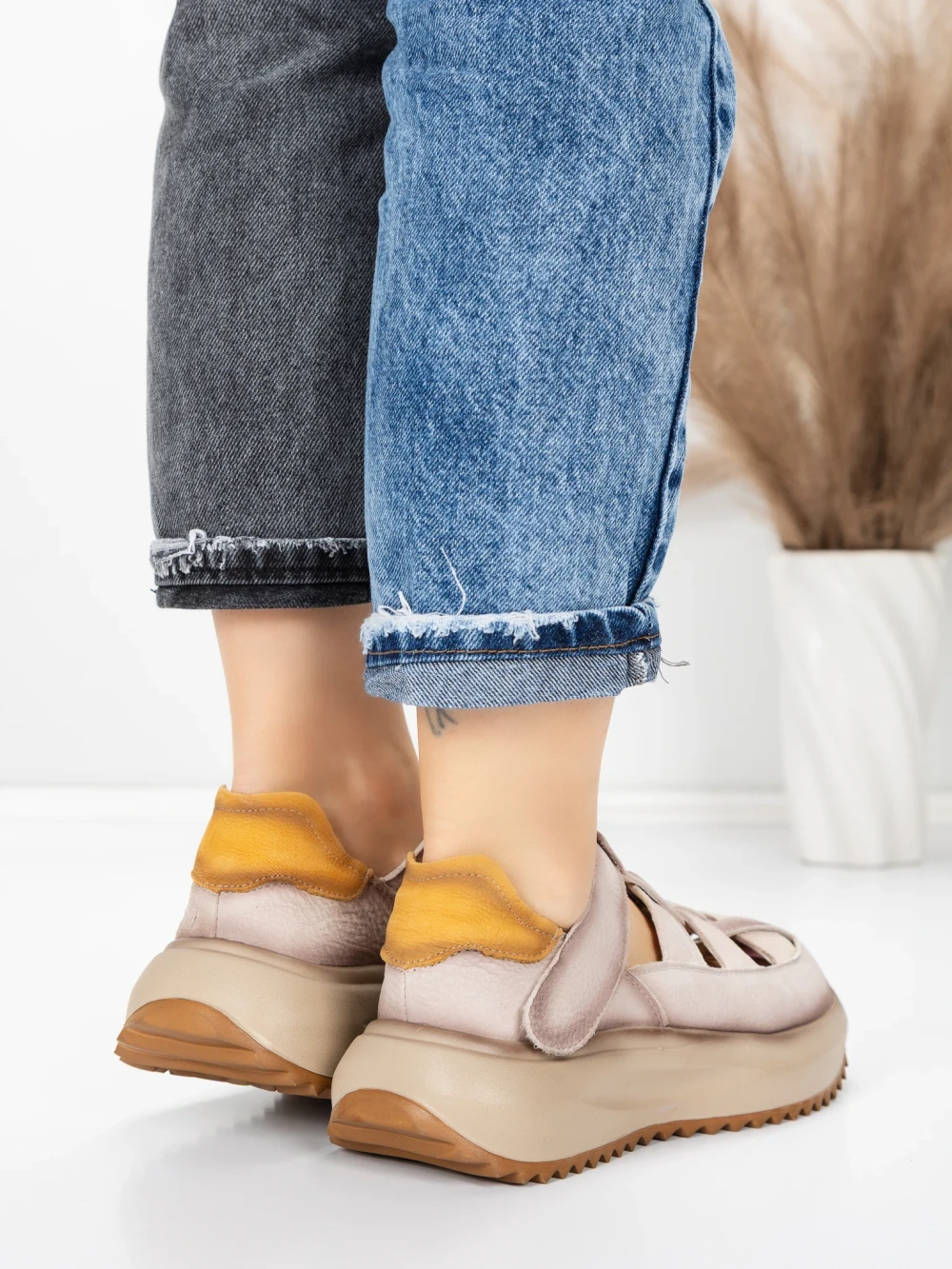 Természetes bőrből készült női sportcipő KM8882 Krém | Advancer