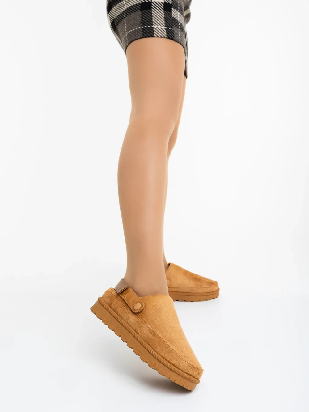 Luara tevebarna női papucs textil anyagból Termék leírás