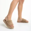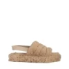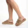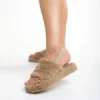 Retal sötét bézs női papucs, szintetikus bundából készült