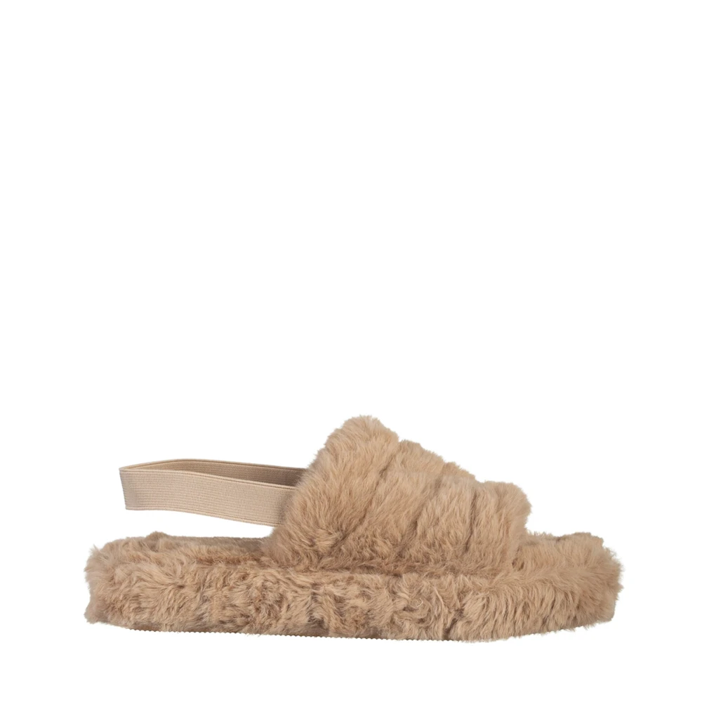 Retal sötét bézs női papucs, szintetikus bundából készült Termék leírás