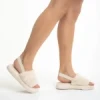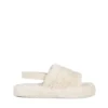 Retal világos bézs női papucs, szintetikus bundából készült