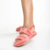 Reneka rózsaszín női papucs, szintetikus bundából készült
