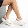 Retal fehér női papucs, szintetikus bundából készült Termék leírás