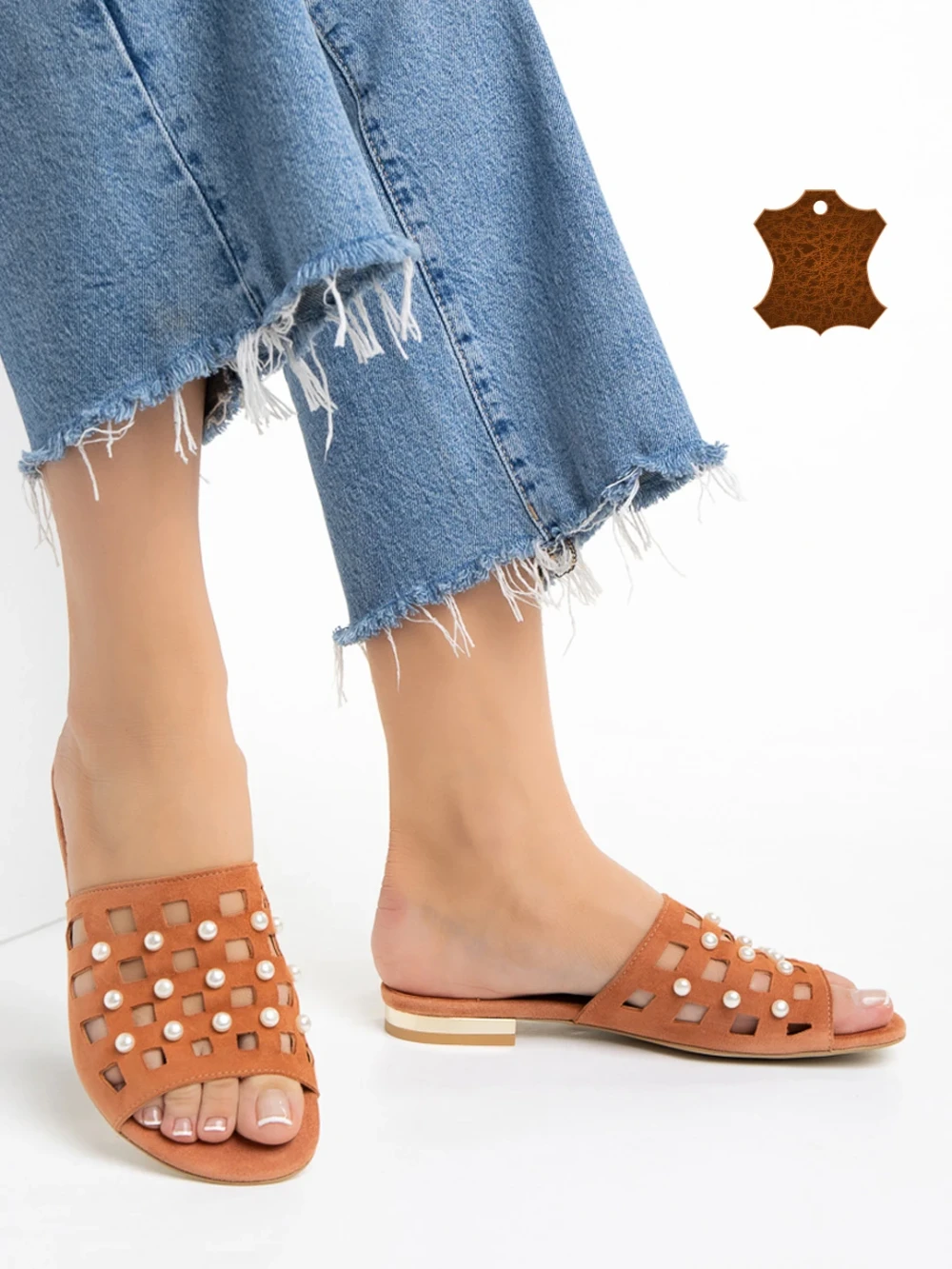 Marco narancssárga női papucs, Elba valódi bőrből készült