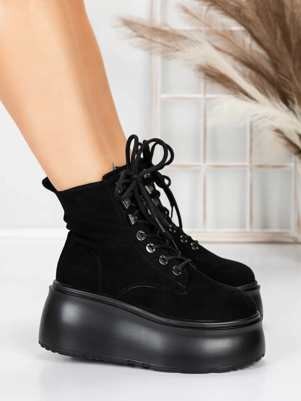 Női platform bakancs 56WL16 Fekete | Mei