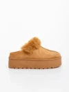 Temaria világos tevebarna női papucs textil anyagból