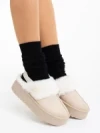 Delisia világos bézs női papucs textil anyagból