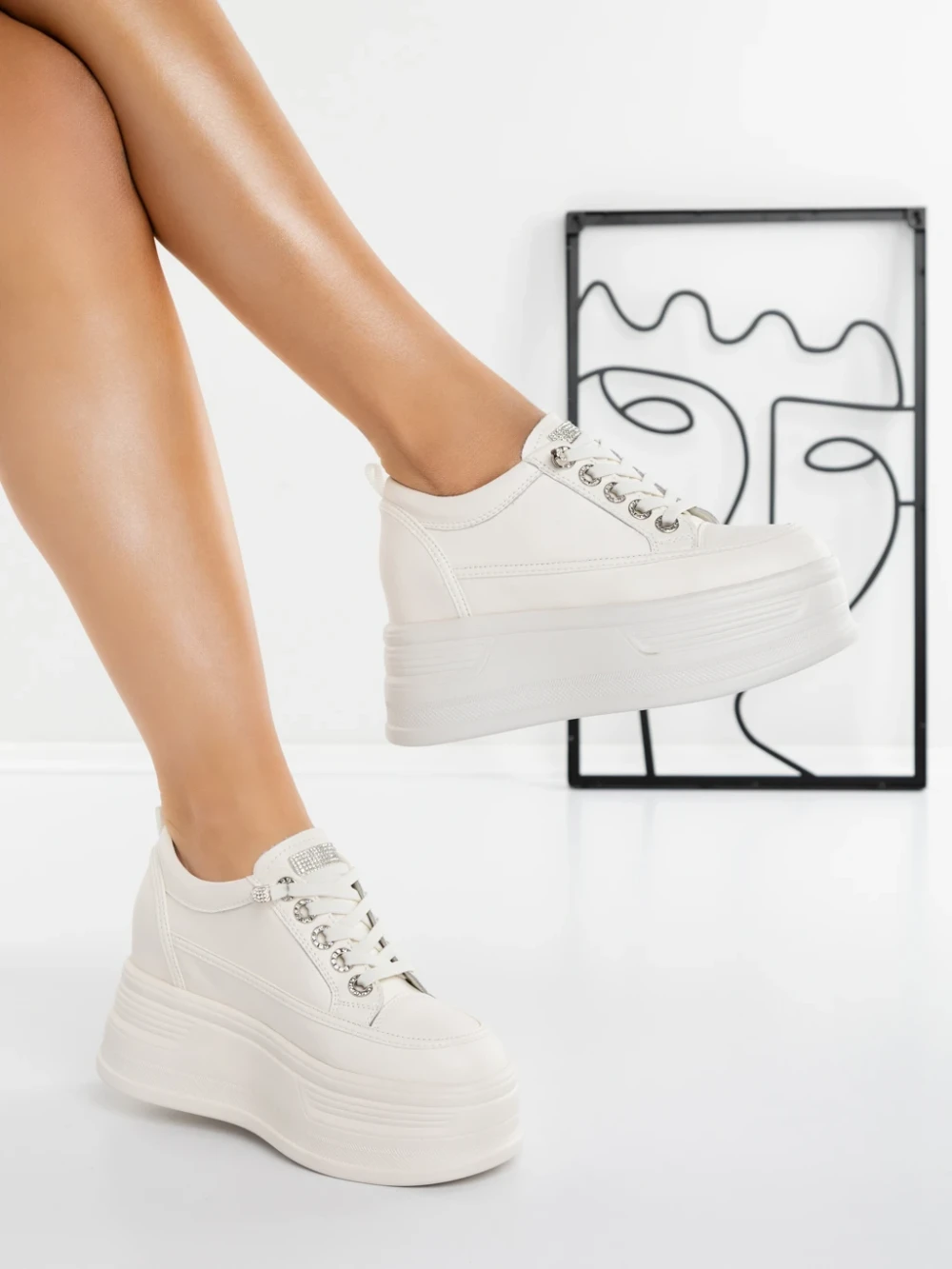 Női sportcipő platformmal 5SJN1 Fehér | Pantoful