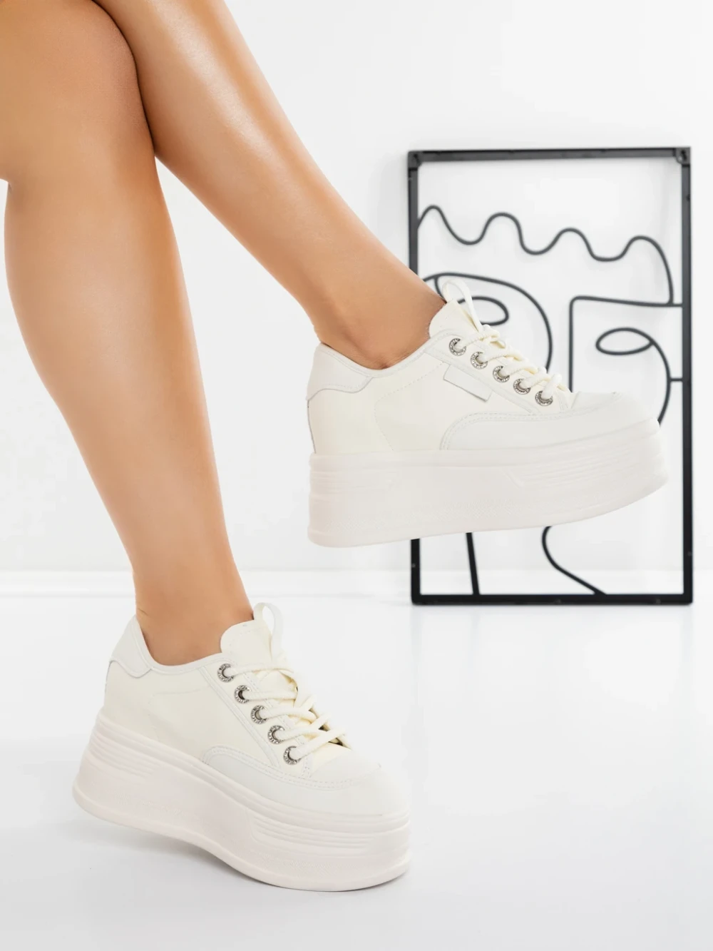 Női sportcipő platformmal 5SJN6 Fehér | Pantoful