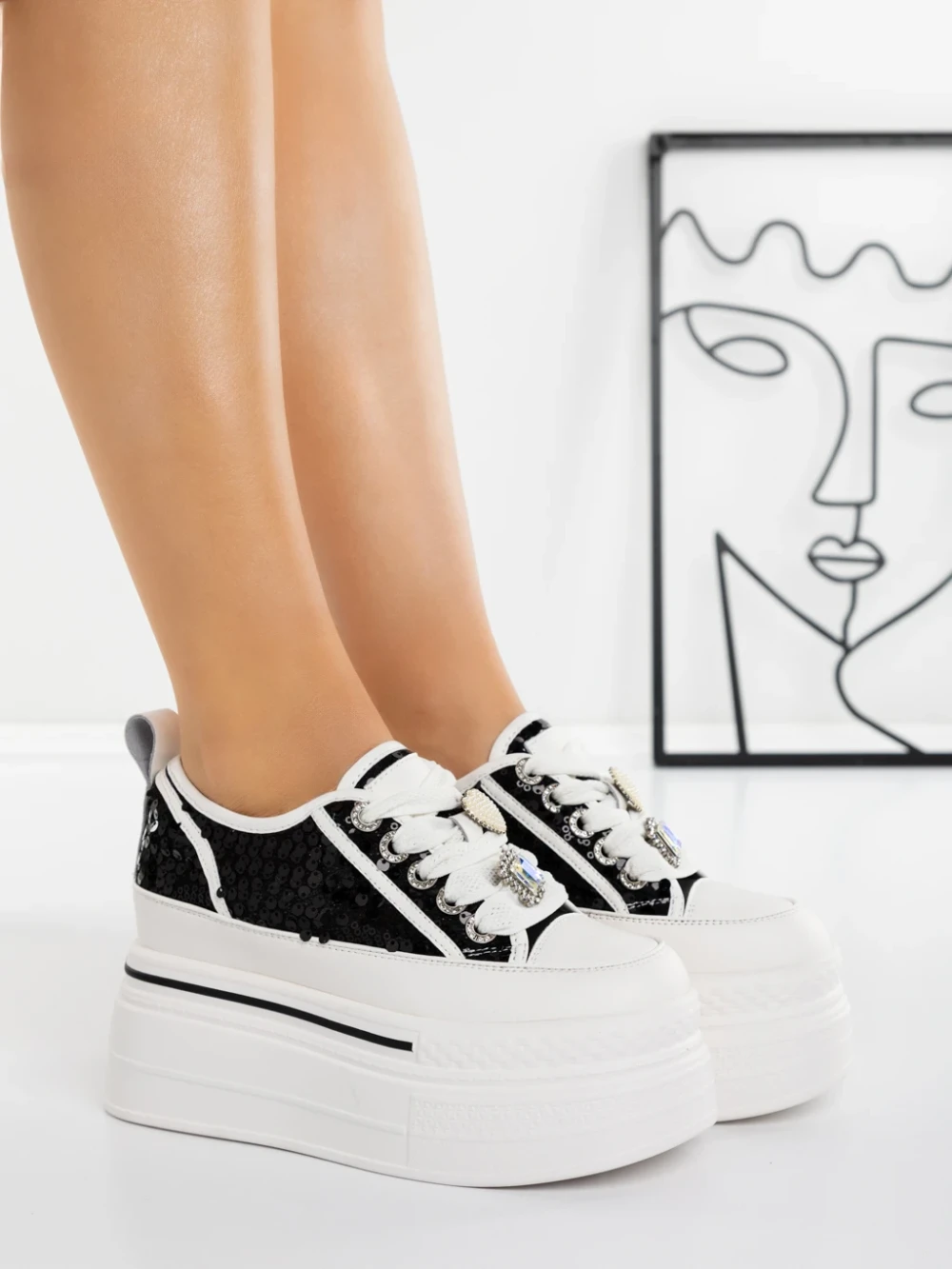 Pantofi Sport Dama cu Platforma 5SJN7 BLACK | PANTOFUL