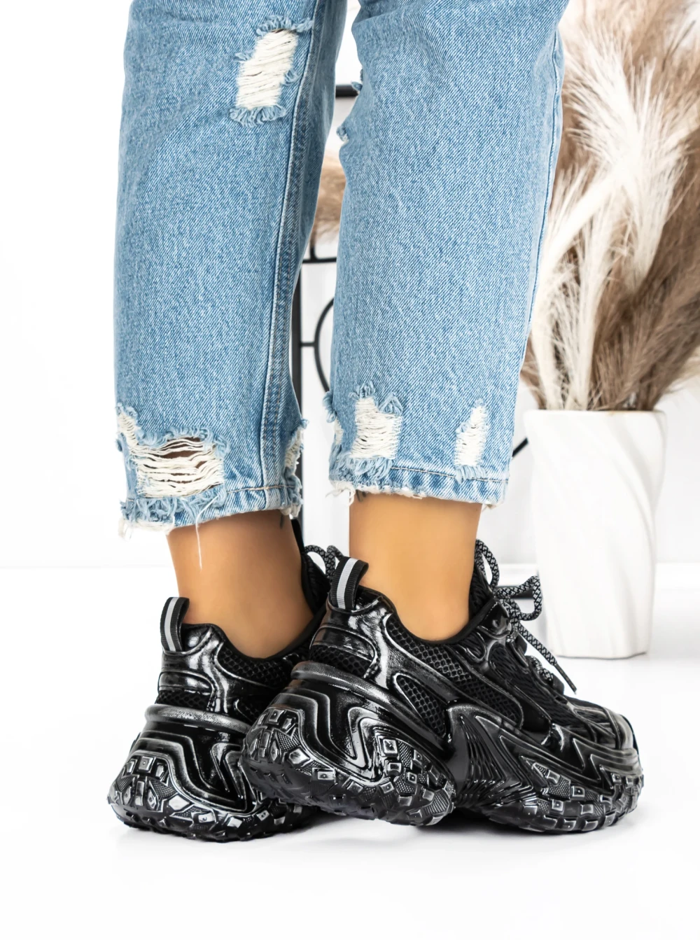 Pantofi Sport Dama cu Platforma 5WL83 BLACK-SILVER | MEI
