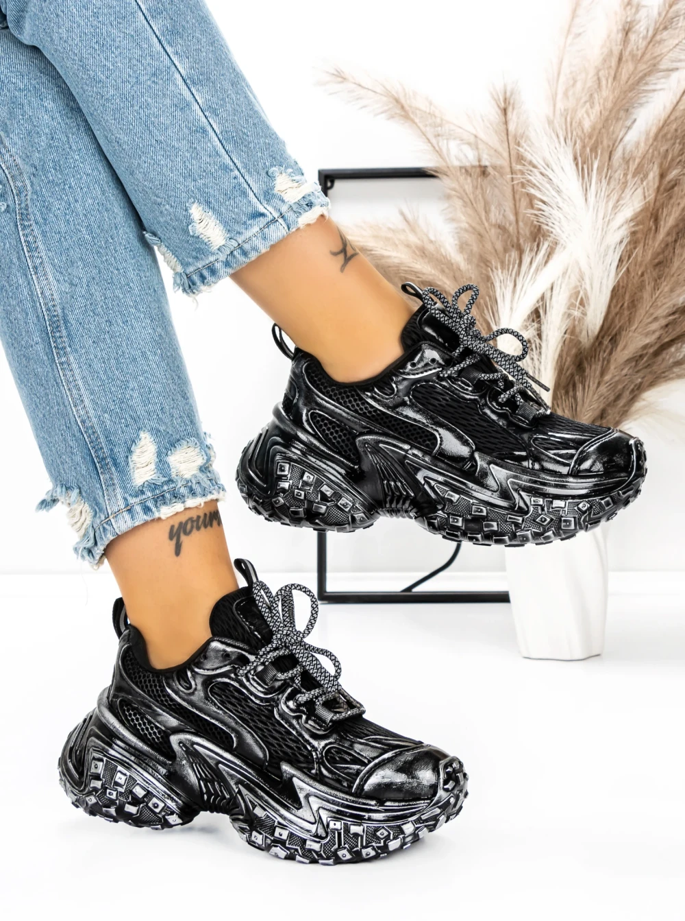 Női sportcipő platformmal 5WL83 Fekete-Ezüst | Mei