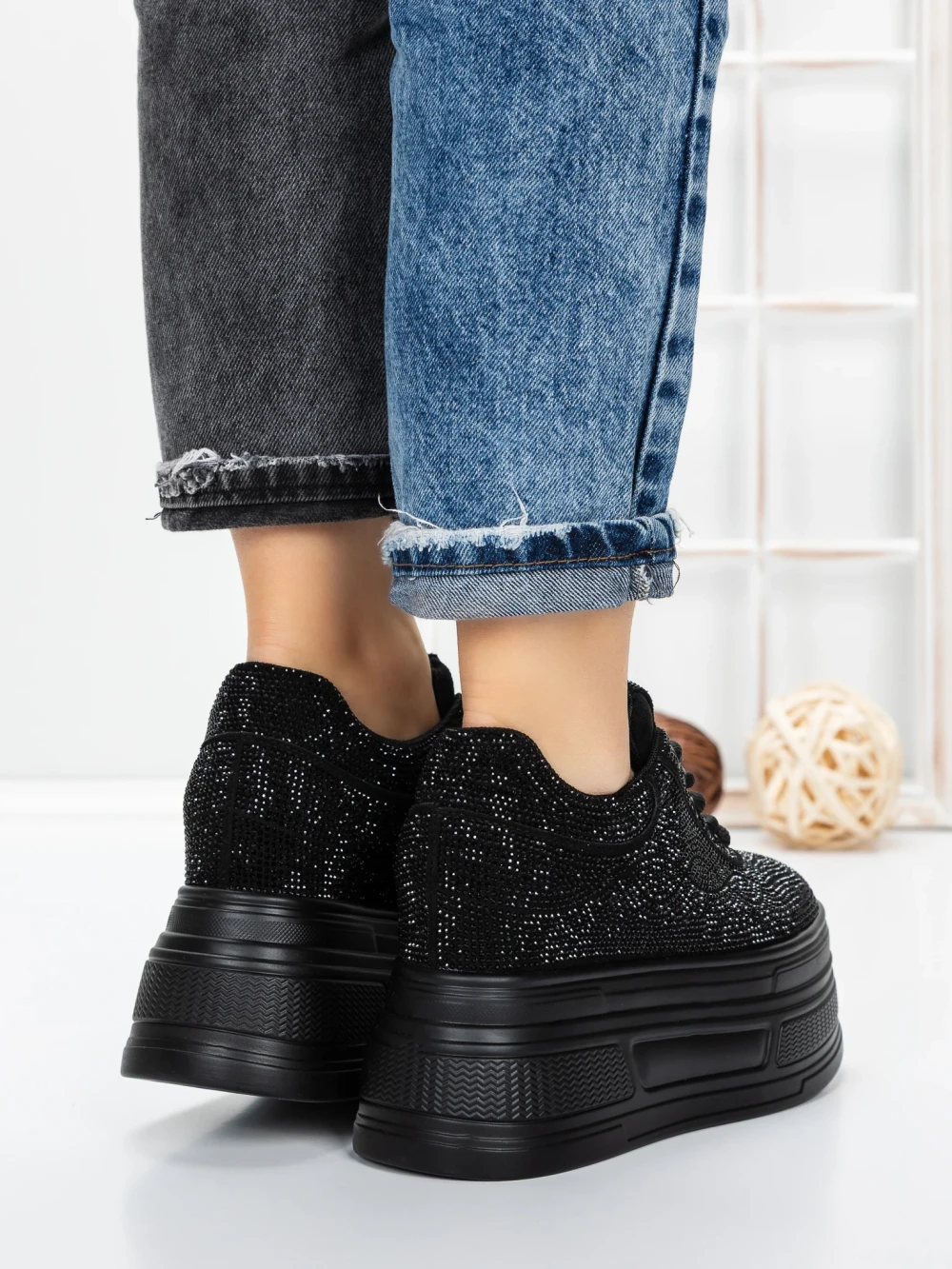 Női sportcipő platformmal 3591-6 Fekete | Mei
