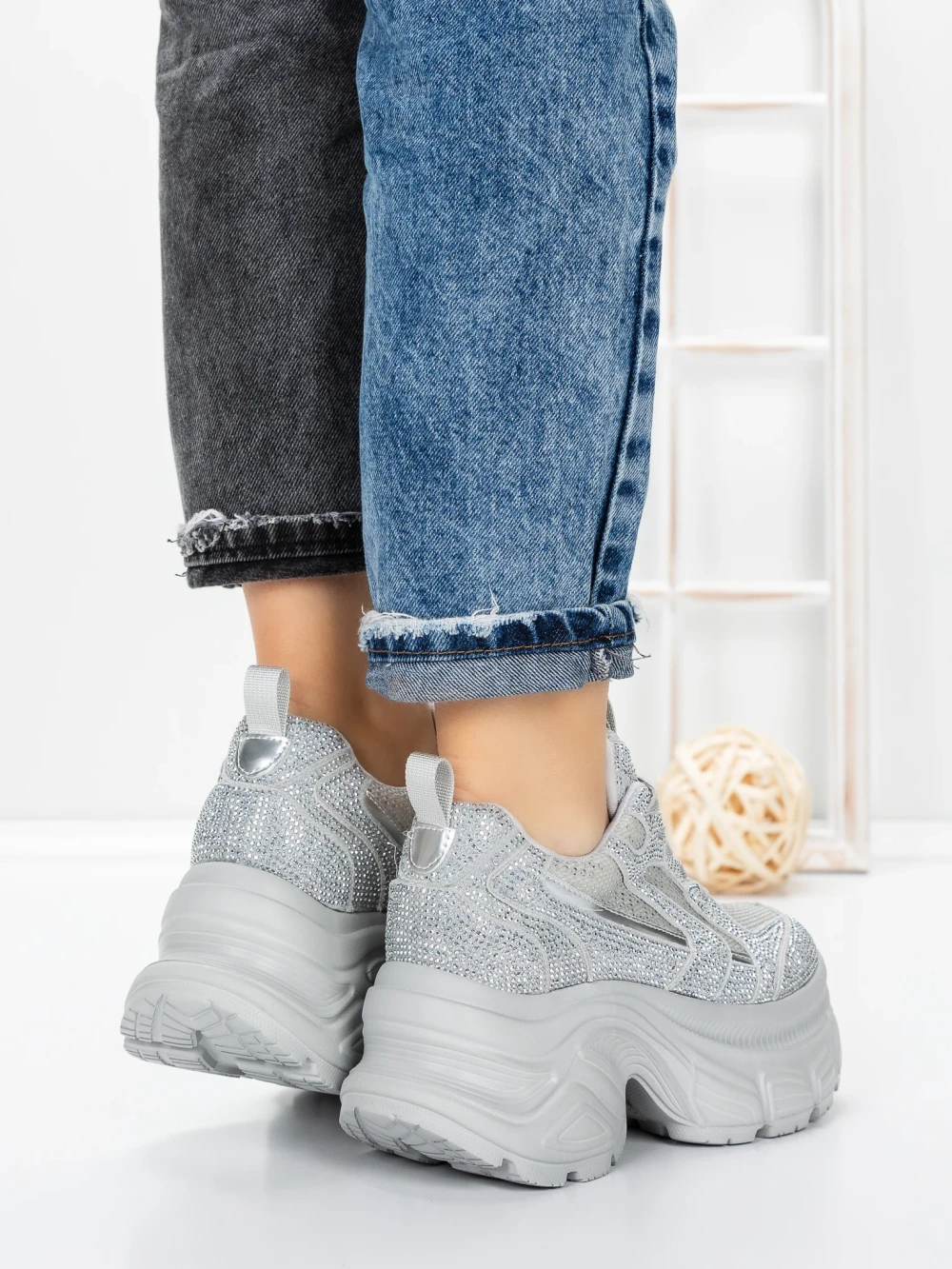 Női sportcipő platformmal 3561 Ezüst | Mei