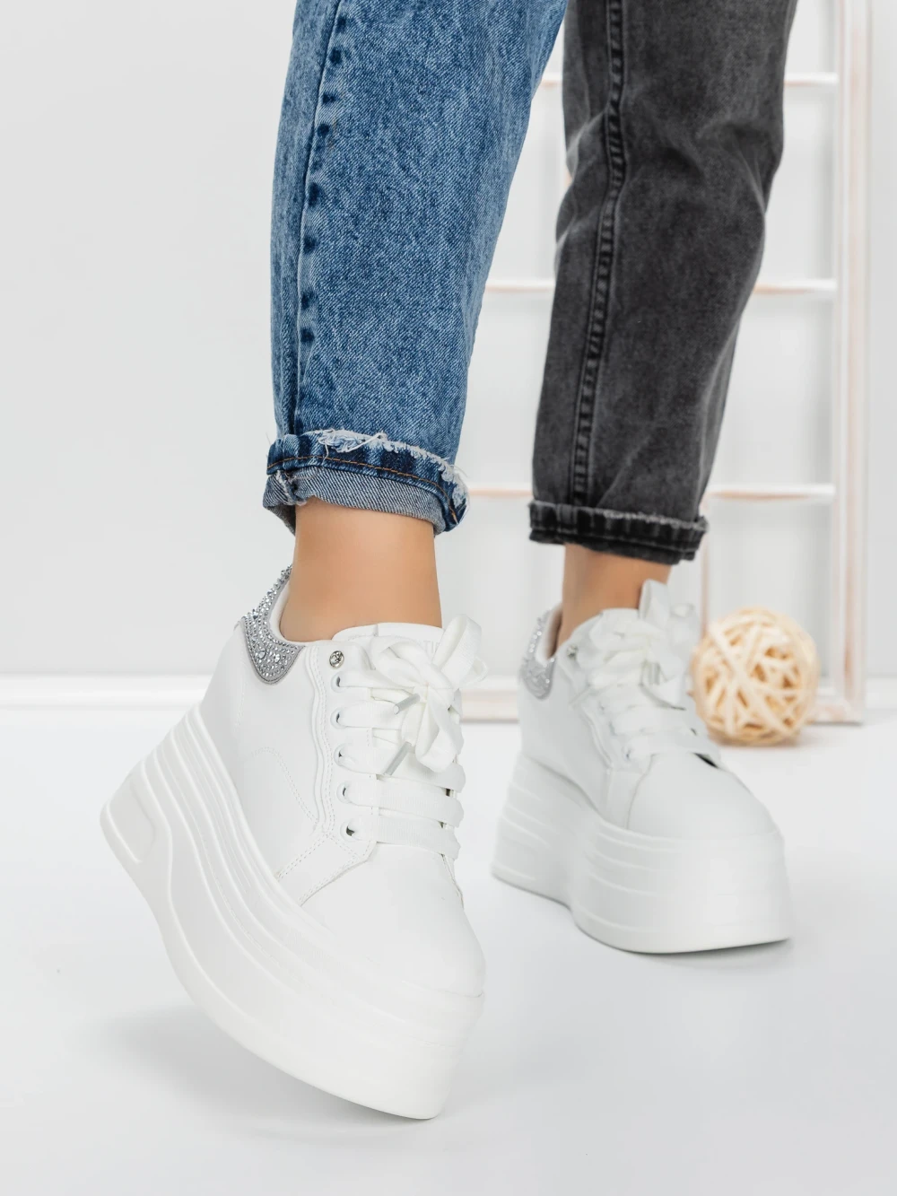 Női sportcipő platformmal 3592-7 Fehér-Szürke | Mei