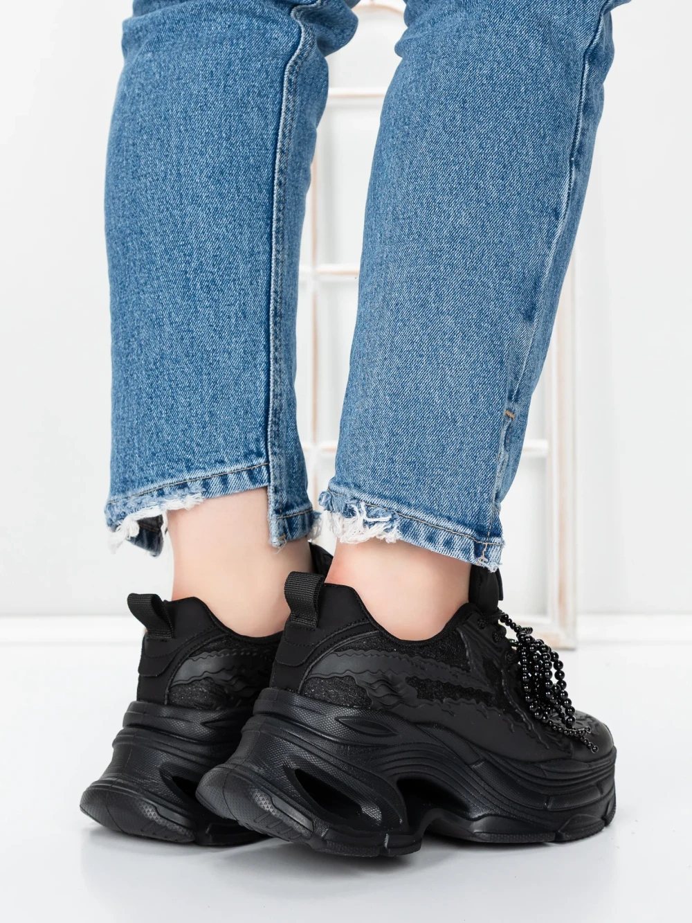 Női sportcipő platformmal 5WL120 Fekete | Mei