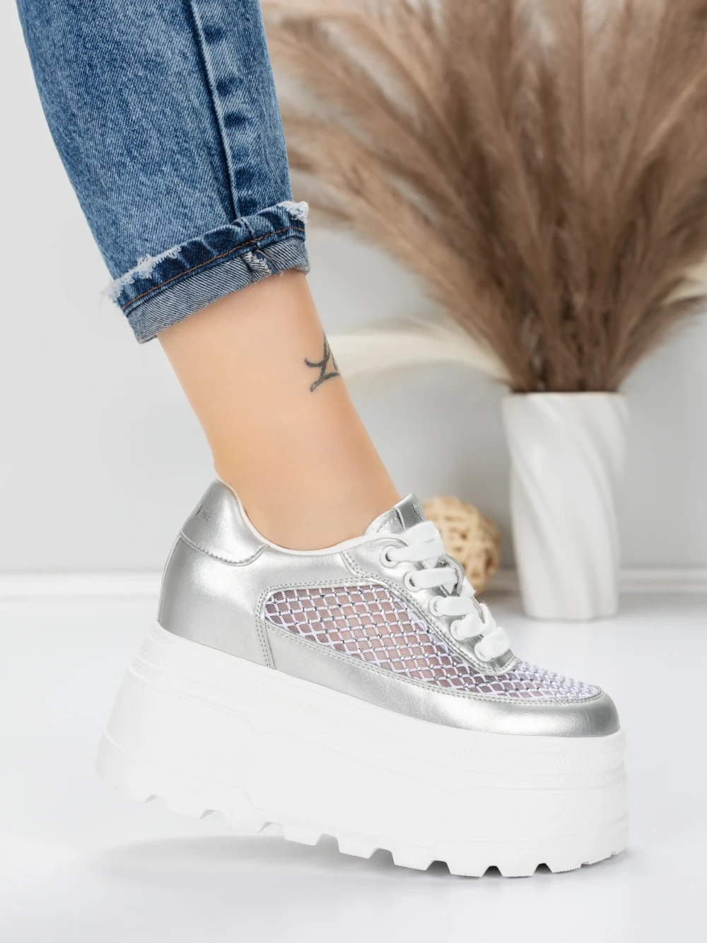 Női sportcipő platformmal 6208-35 Ezüst | Mei
