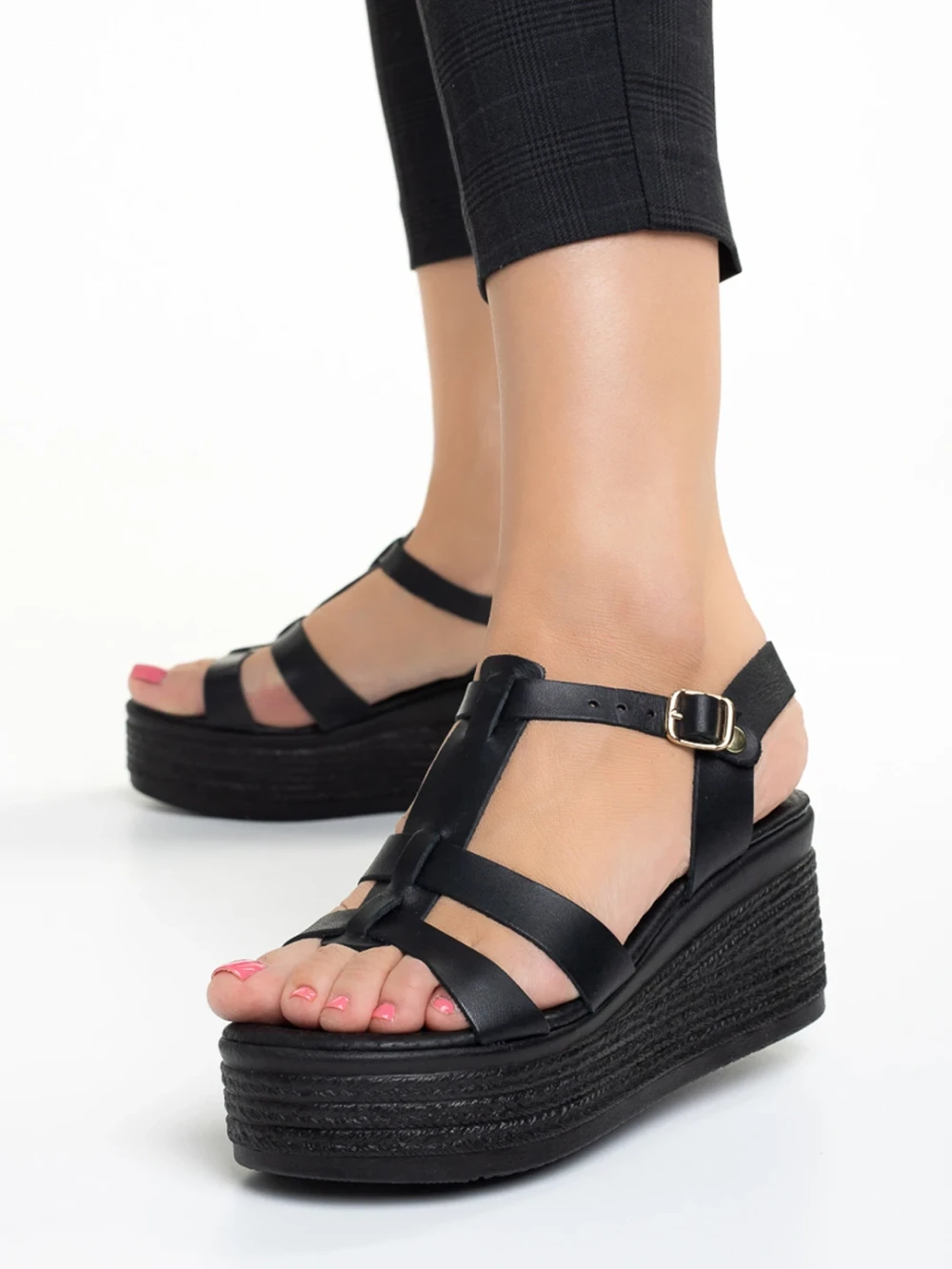 Girlhood fekete női szandál, Afroditi valódi bőrből
