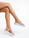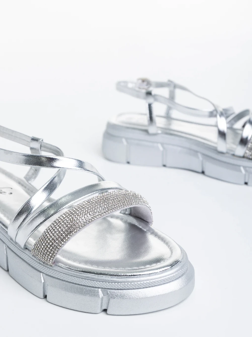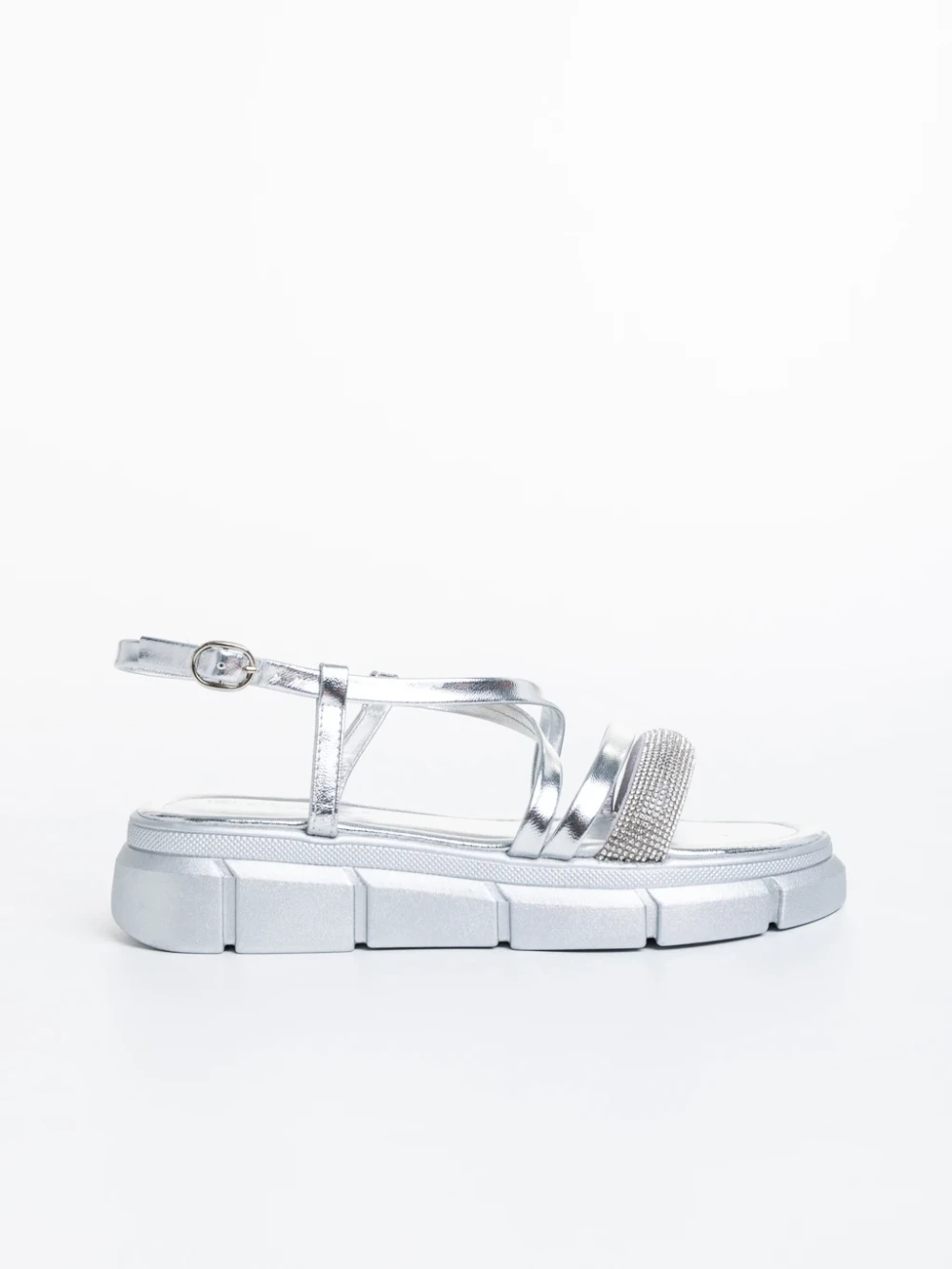 Sayda ezüst színű, női szandál, lakkozott ökológiai bőrből