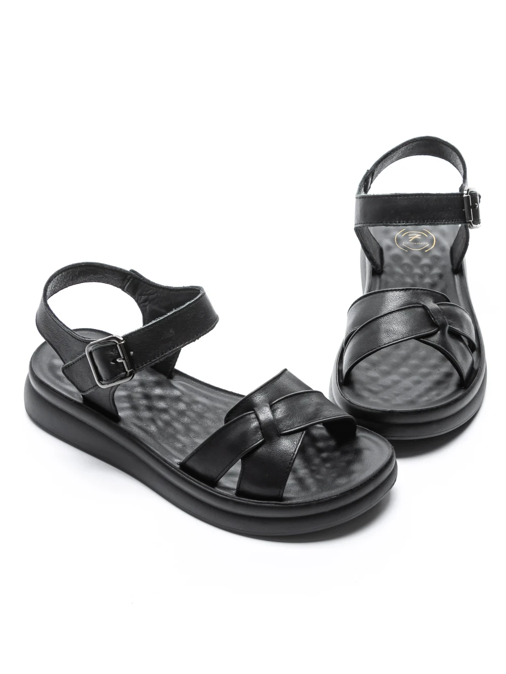 Valódi bőrből készült női szandál 28-16 Fekete | Formazione