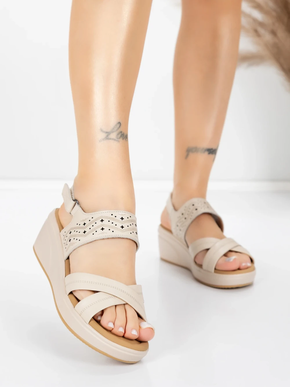 Sandale Dama din piele naturala 9573 CREAM | ADVANCER